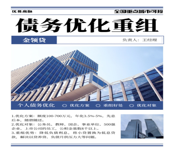 9.寻求专业帮助:如果个人负债情况较为复杂问题,可以寻求专业财务顾问的帮助,进行更全面的债务重组方案。