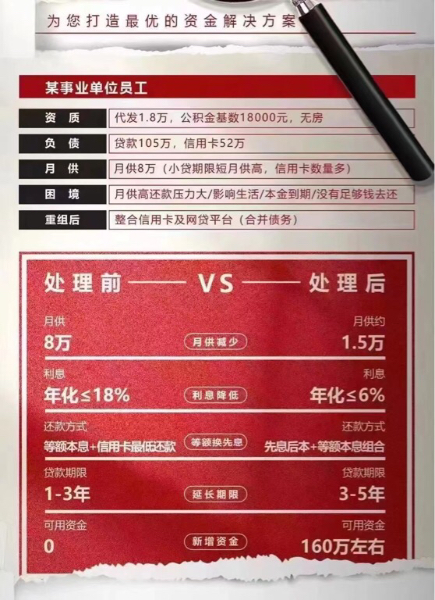 1.解决个人查询多、高负债危机,帮助客户解决新增资金问题,助力解决以贷养贷等问题;
